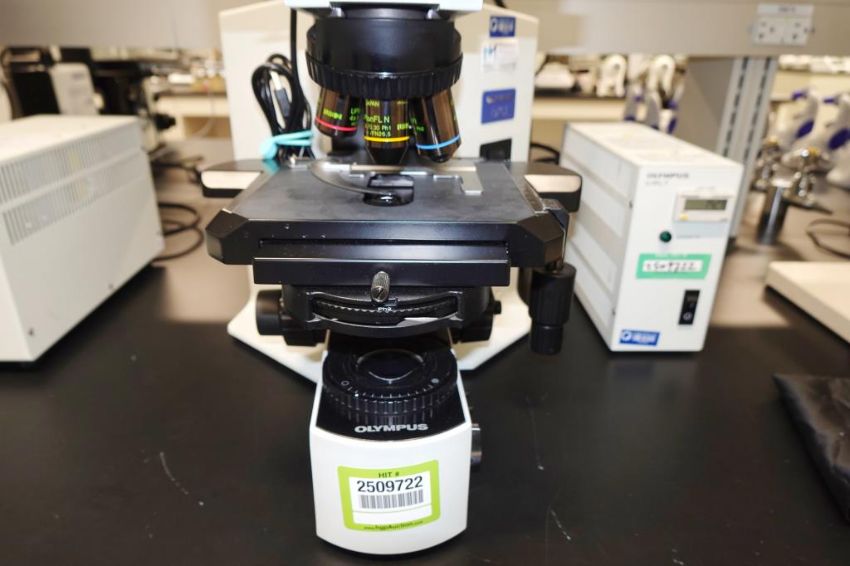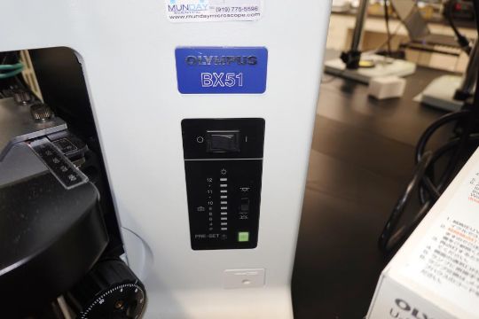 Olympus BX51TRF Microscope With Digital Microscope Camera, Four Objectives To Include (1ea) Olympus UplanFL 100x/ 0.30 Oil PH3, UplanFL 40x/0.75 PH2, UplanFL 10x/0.30, PH1 And UplanFL 4x/0.13 Objectives, Upper & Lower Light Sources, Model U-RFL-T Light Power Supply, Mechanical Stage & (Qty 2) Eyepieces. SN# 4B18112. Asset# 230459. HIT# 2509722. Asset Located at 112 S Duke St., Durham, NC 27701.