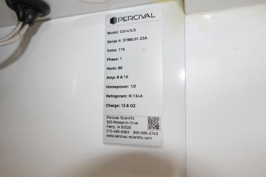 Percival CU-41L5 Incubator- Environmental Chamber. SN# 31960.01.23. Asset# 230558. HIT# 2509688. Asset Located at 112 S Duke St., Durham, NC 27701.