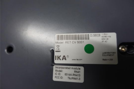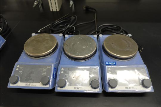 IKA RET CV S001 Lot Includes (3) Hot Plate Stirrers, 115 v, 60 Hz, Stirrer Speed: 0 - 1,500 RPM, Max Heating Temperature: 340 °C, Max Stirring Volume: 20L. SN# 03590207, 03589338, 03589340. Asset# 230070, 230071, 230204. HIT# 2516099. Asset Located at 112 S Duke St. STE 1B, Durham, NC 27701.
