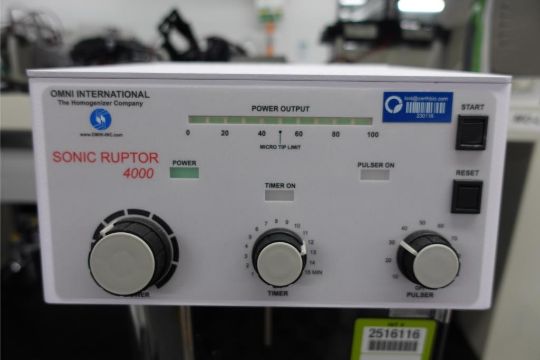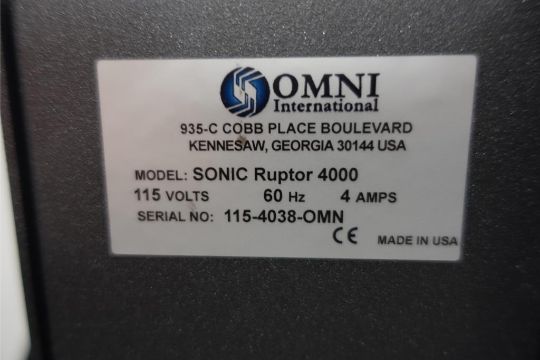Omni International Sonic Ruptor 4000 Ultrasonic Homogenizer, 115 v, 4 AMPS, 60 Hz. SN# 115-4038-OMN. Asset# 230116. HIT# 2516116. Asset Located at 112 S Duke St. STE 1B, Durham, NC 27701.