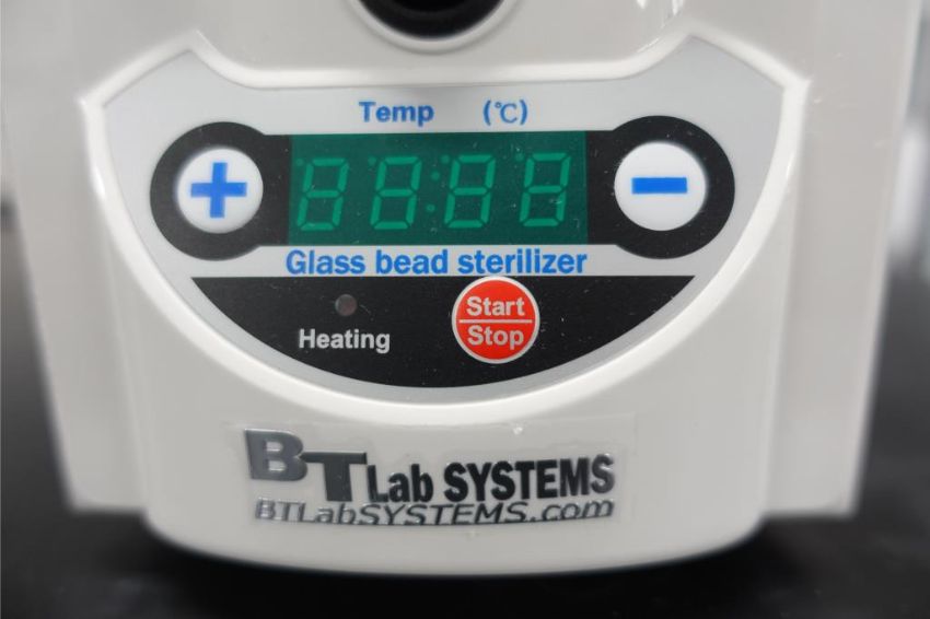 BT Lab Systems BT1703 Glass Bead Sterilizer, 120 v, 3 AMPS, 60 Hz, Max Temperature: 300 °C, Temperature Control Accuracy: <±5 °C. SN# BL-E94-1147. HIT# 2516123. Asset Located at 112 S Duke St. STE 1B, Durham, NC 27701.