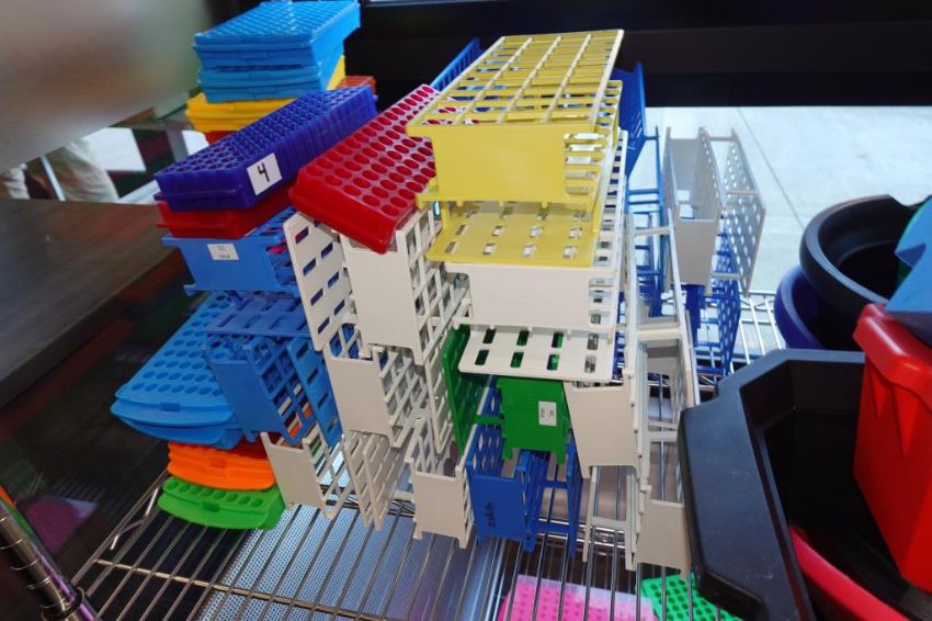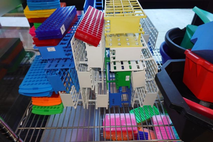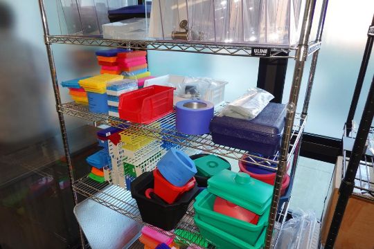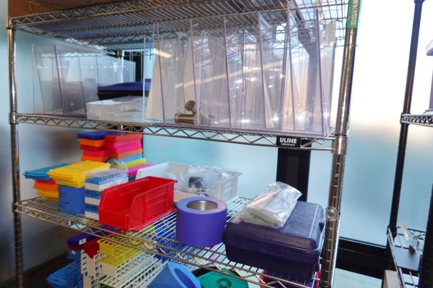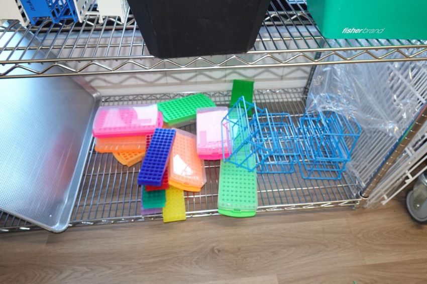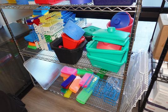 (1-Lot) Assorted Lab Consummables & Racks To Include Assorted Tube Hoder Racks, Poltex Pipet Holder Racks, Ice Buckets, Thermo Scientific Amedillo High Performance 394-Well PCR Plates, RediSep Gold High Performance Silica Chromotography ColumnsNalgene Beakers And MORE! Includes Two Lab Storage Racks. As Shown. HIT# 2509769. Main Lab. Asset Located at 112 S Duke St., Durham, NC 27701.