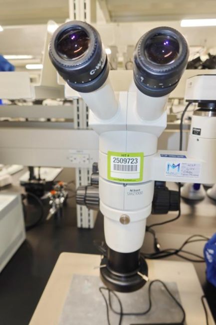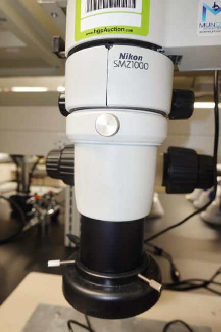 Nikon SMZ1000 Stereozoom Microscope With GT 5.0 Color Microscope Camera, Light Ring, (Qty 2) C-W10xB/22 Eyepieces And Stand. Asset# 230168. HIT# 2509723. Asset Located at 112 S Duke St., Durham, NC 27701.
