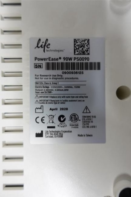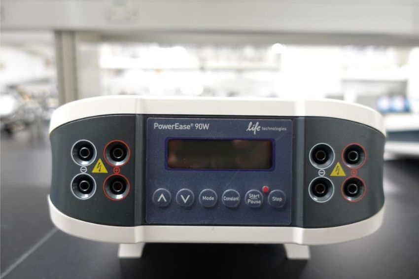 Life Technologies PowerEase 90W Gel Electrophoresis Power Supply, 115 v, 60 Hz w/ (1) Thermo Scientific m# 7339 Gel Tank. SN# 900936125. Asset# 230595. HIT# 2516092. Asset Located at 112 S Duke St. STE 1B, Durham, NC 27701.