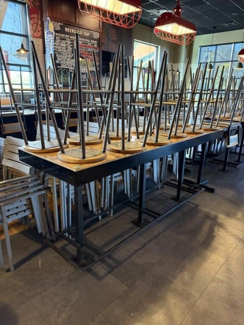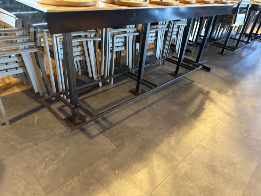 Crow Works Rectangle Bar Table with (12) Stools. HIT# 2569957. Loc: Dinning Area. Asset Located at 950 Lehigh Valley Mall, Whitehall, PA 18052. ***Auctioneer Notice*** Payment is Due No Later Than December 8th. Removal by Appointment Only, December 8 Thru December 19. Any lots not removed by close of business on December 19, 2025, will be deemed abandoned without refund or recourse.
