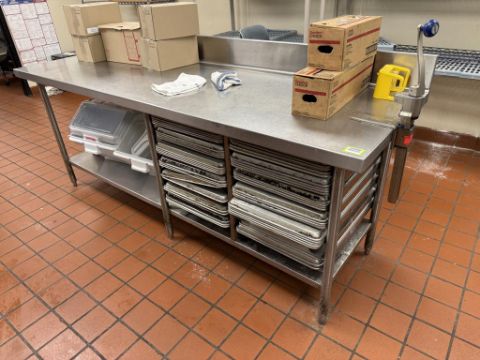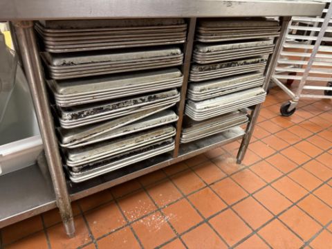Stainless Steel Table with Contents (Baking Trays/Bins/. HIT# 2569908. Loc: Kitchen Area. Asset Located at 950 Lehigh Valley Mall, Whitehall, PA 18052. ***Auctioneer Notice*** Payment is Due No Later Than December 8th. Removal by Appointment Only, December 8 Thru December 19. Any lots not removed by close of business on December 19, 2025, will be deemed abandoned without refund or recourse.