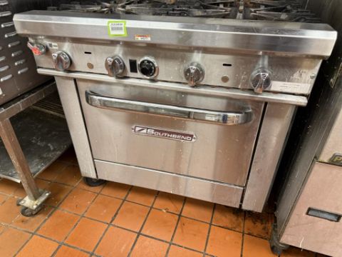 Southbend Commercial Gas Range (4) Burner with Oven. HIT# 2569894. Loc: Kitchen Area. Asset Located at 950 Lehigh Valley Mall, Whitehall, PA 18052. ***Auctioneer Notice*** Payment is Due No Later Than December 8th. Removal by Appointment Only, December 8 Thru December 19. Any lots not removed by close of business on December 19, 2025, will be deemed abandoned without refund or recourse.