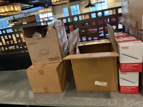 Restaurant Equipment consisting of (Tork Beverage Napkins/Jumbo Straws/Serving Plates/Metal Baskets/Sauce/Utensils/Forks/Knives/Cup Lids/Clear Plastic Drinkware/Serving Trays/Beverage Glasses). HIT# 2569965. Loc: Dinning Area. Asset Located at 950 Lehigh Valley Mall, Whitehall, PA 18052. ***Auctioneer Notice*** Payment is Due No Later Than December 8th. Removal by Appointment Only, December 8 Thru December 19. Any lots not removed by close of business on December 19, 2025, will be deemed abandoned without refund or recourse.