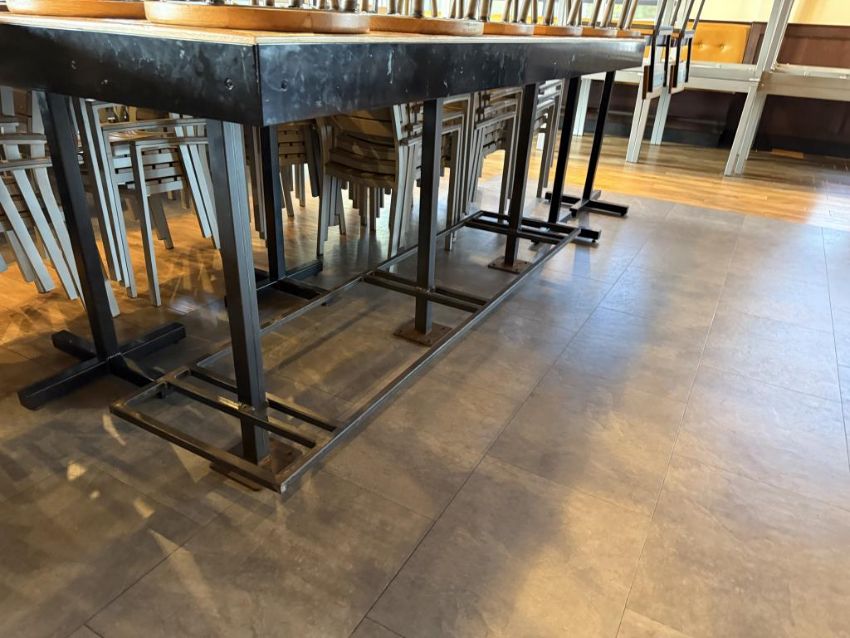 Crow Works Rectangle Bar Table with (12) Stools. HIT# 2569958. Loc: Dinning Area. Asset Located at 950 Lehigh Valley Mall, Whitehall, PA 18052. ***Auctioneer Notice*** Payment is Due No Later Than December 8th. Removal by Appointment Only, December 8 Thru December 19. Any lots not removed by close of business on December 19, 2025, will be deemed abandoned without refund or recourse.