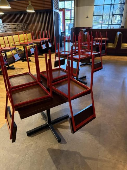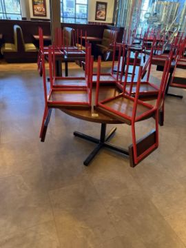Crow Works Denver Lot to Include (7) Square Base Dinning Tables, (1) Round Base Dinning And (32) Warren Chairs Red. HIT# 2569950. Loc: Dinning Area. Asset Located at 950 Lehigh Valley Mall, Whitehall, PA 18052. ***Auctioneer Notice*** Payment is Due No Later Than December 8th. Removal by Appointment Only, December 8 Thru December 19. Any lots not removed by close of business on December 19, 2025, will be deemed abandoned without refund or recourse.