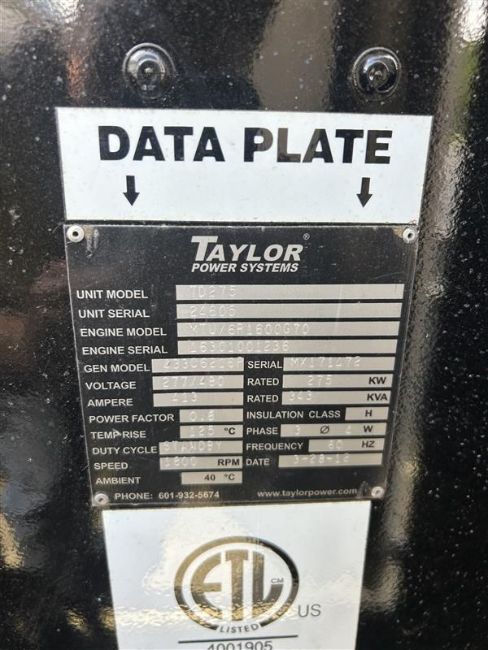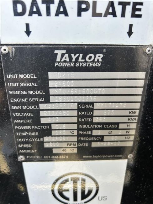 Taylor Power Systems TD275 Generator. Asset Located at Egg Harbor Township, NJ 08234.
