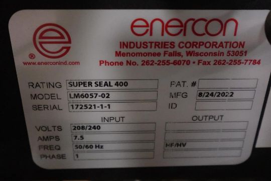 Enercon IM6057-02 Super Seal. S/N 172521-1-1. HIT #2527653. Fiscus Bay 1. Asset(s) Located at 2000 Rosanna Avenue, Scranton, PA 18509. ***Auctioneer Notice*** Payment is Due No Later Than Monday, December 22, 2025. Removals Will Be Available By Appointment Only, January 5 Thru January 9.