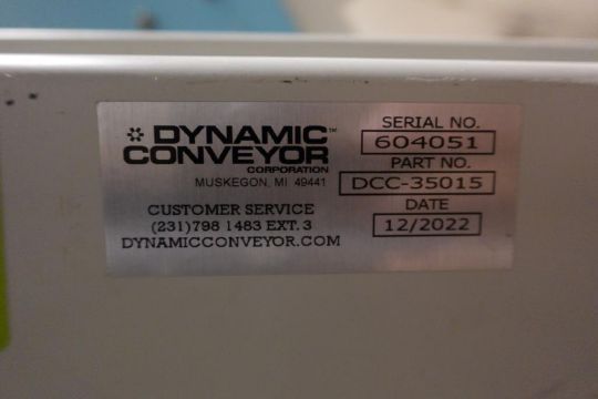 Dynamic Conveyor DCC-35015 Conveyor Dimensions are 45" x 90" x 104" with 9 1/2" spacing. S/N 604051. Asset # SCR-00519. HIT #2527650. Fiscus Bay 1. Asset(s) Located at 2000 Rosanna Avenue, Scranton, PA 18509. ***Auctioneer Notice*** Payment is Due No Later Than Monday, December 22, 2025. Removals Will Be Available By Appointment Only, January 5 Thru January 9.