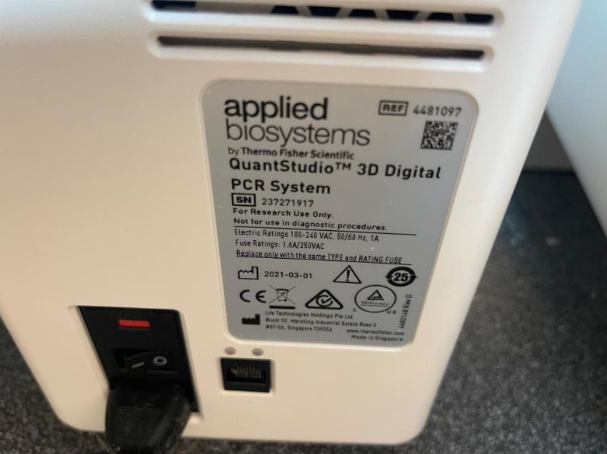 Applied Biosystems QuantStudio 3D Digital PCR System. HIT# 2550853. Room 208. Asset Located at 50 Health Sciences Drive, Stony Brook, NY 11790.