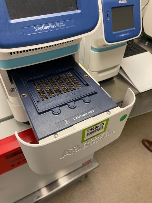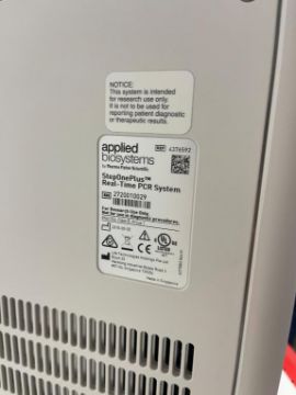 Applied Biosystems Step One Plus PCR System. SN# SN2720010029.. HIT# 2550843. Room 205. Asset Located at 50 Health Sciences Drive, Stony Brook, NY 11790.