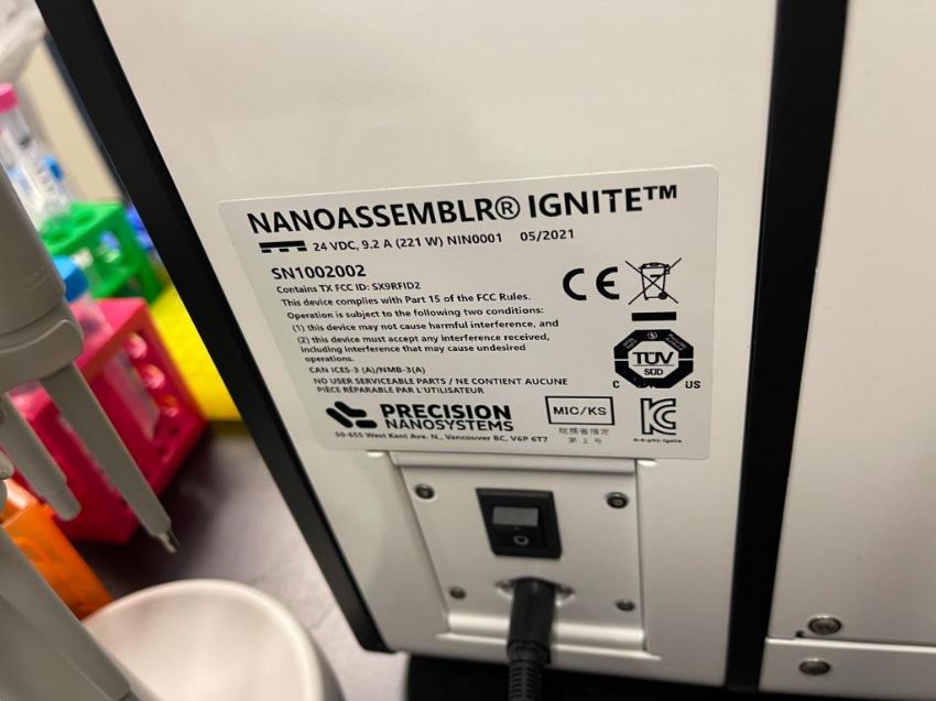 Precision Nanosystems NanoAssemblr Ignite. SN# SN1002002.. HIT# 2550835. R&D 125. Asset Located at 50 Health Sciences Drive, Stony Brook, NY 11790.