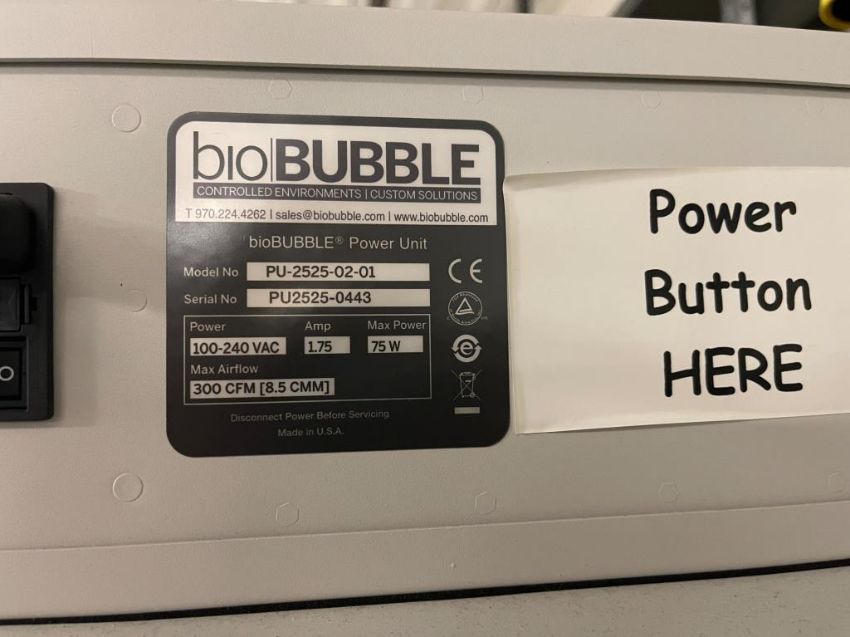 Bio Bubble PU-2525-02-01 Controlled Environment Power Tent. SN# PU2525-0443.. HIT# 2550811. R&D Warehouse 508. Asset Located at 50 Health Sciences Drive, Stony Brook, NY 11790.