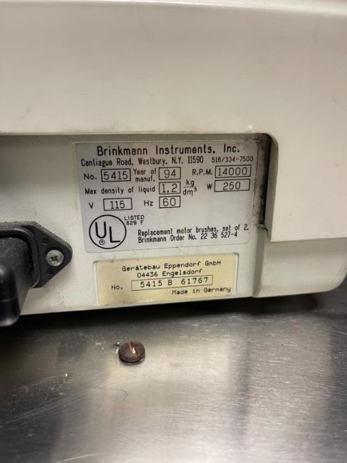 Eppendorf 5415C Centrifuge. SN# SN5415B61767.. HIT# 2550852. Room 208. Asset Located at 50 Health Sciences Drive, Stony Brook, NY 11790.