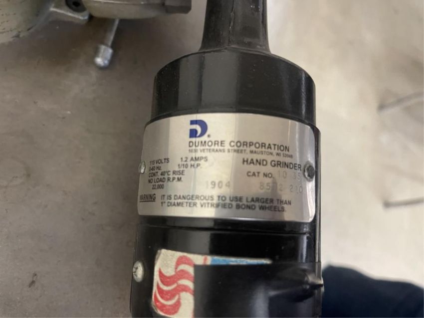 Dumore 1/10 HP Hand Grinder, 115V, 60Hz. HIT# 2371555. Asset Located at 3211 W Harvard St., Santa Ana, CA 92704.