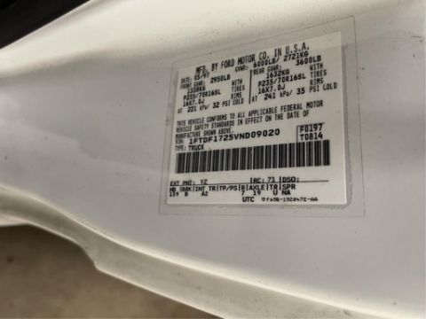 1997 Ford F150 Pickup Truck, Front GAWR: 2950 Lbs. Rear GAWR: 3600 Lbs. 108,509 Miles. VIN: 1FTDF1725VND09020. HIT# 2371615. Asset Located at 3211 W Harvard St., Santa Ana, CA 92704.