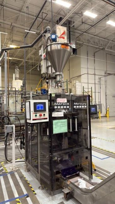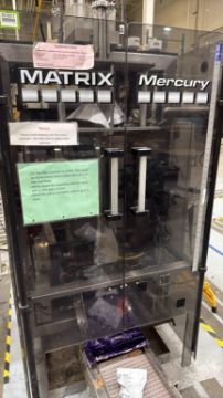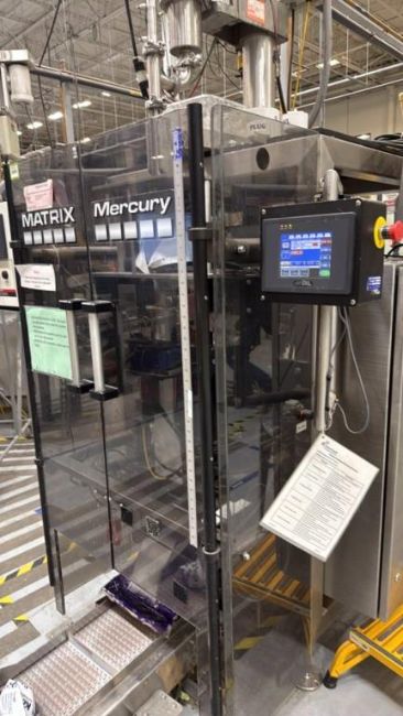 Matrix Model Mercury 2840R Vertical Form-Fill-Seal Packaging System, sn SB08185. Power: 280V, 1Ph, 60Hz. Air Requirements: 60PSI. W/ (1) 2008 All-Fill Model B-600 Auger Filler sn 24216. Power: 220V. (1) Air-Draulic Engineering Conveyor Feed System, (1) Rotary Accumulation Turn Table. HIT# 2519211. Asset Located at 135 Constitution Blvd., Franklin, MA 02038.